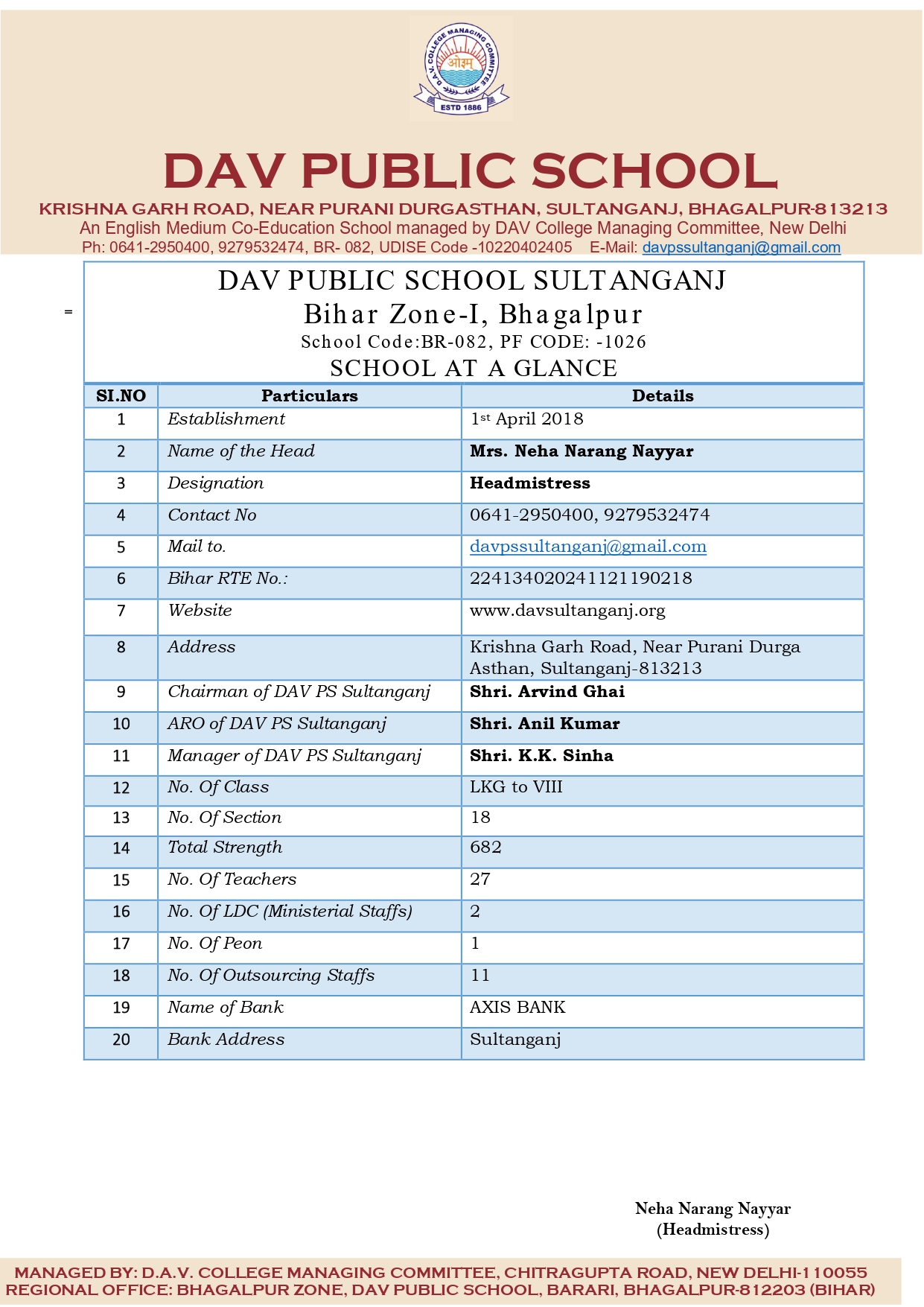 DAV PUBLIC SCHOOL Krishna Garh Road,Near Purani Durga Sthan Distt.-Bhagalpur, Sultanganj, Bihar-813213 Telephone No.:-6412950400 E-Mail: davpssultanganj@gmail.com Website: www.davsultanganj.org